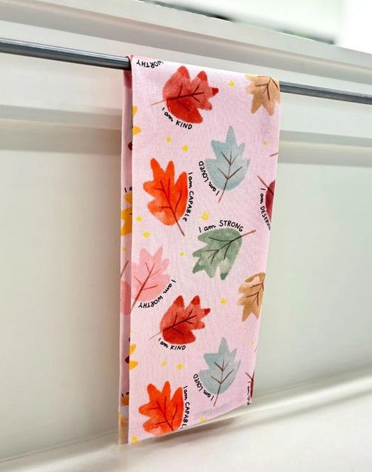Autumn Leaves Affirmations Tea Towel